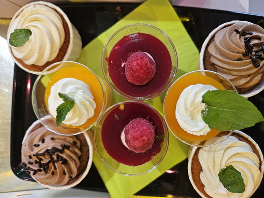 Mojitomousse, Himbeermousse, Schoggimousse...